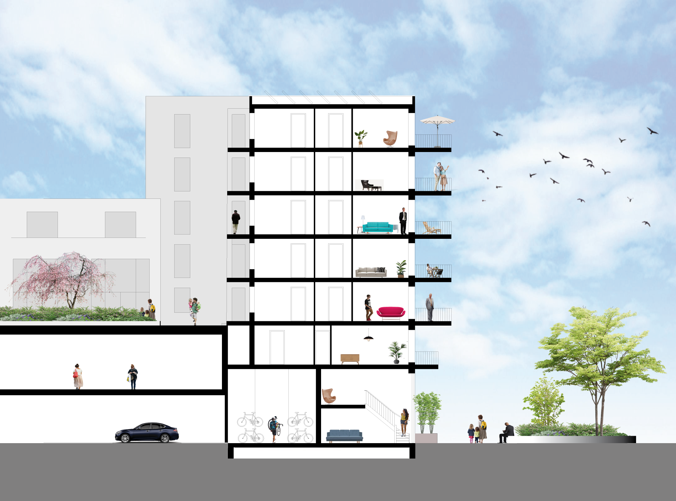 Waddix is een nieuwbouwproject van ontwikkelaar MRP, gelegen aan de zuidelijke kop van het winkelcentrum Gouweplein, en vormt een van de laatste fases in de ontwikkeling van het centrumplan van Waddinxveen. Het woonblok markeert de afronding van een van de bouwblokken bovenop de parkeerlaag en fungeert als sluitstuk van het gebied. Boven de winkels bevinden zich 53 comfortabele en duurzame appartementen van 50 m² tot 90 m², georganiseerd rondom een opgetild groen woondek. Waddix staat voor betaalbaar wonen met alle voorzieningen binnen handbereik: een levendig centrum, goede verbindingen met grote steden en de nabijheid van natuur.